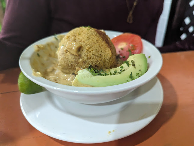 Pedimos un “velo de novia” que consiste en un bolon de verde mixto de queso con chicharrón bañado en queso con sal prieta y un mega majado de verde con queso y chicharrón, los acompañamos con café y jugo de naranja!
